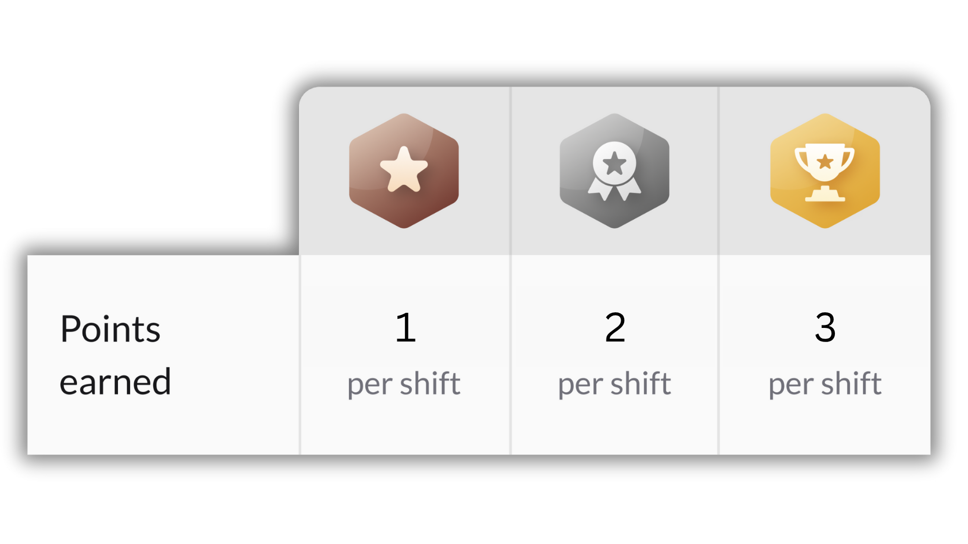 You earn points after each completed shift, based on your current badge level: